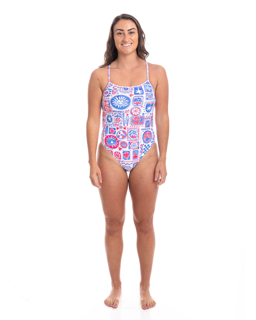 A great style for training or competing. With an open back and unique criss-crossing back strap configuration this style is both beautiful and functional. Our swimwear can take you from training to relaxing on the beach in style.